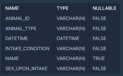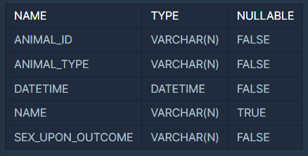 ANIMAL_INS 테이블은 동물 보호소에 들어온 동물의 정보를 담은 테이블