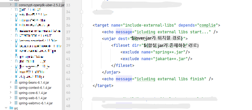 확인을 했다면 해당 jar의 META-INF 하위에 존재하는 RSA, SF, DSA 확장자 파일들을 제외하고 패키징 해주는 부분을 추가하면 됩니다! 이제 와서 쉽게 말하지만 해결하는데 오래 걸렸다. ANT BUILD를 해본 적도 없고 패키징 하는 데 사용하는 type? 이 달라서 좀 고생했습니다. 내가 선호하는 리팩토링 방식은 기존의 것은 최대한 건드리지 않고 수정하는 것이기 때문입니다!