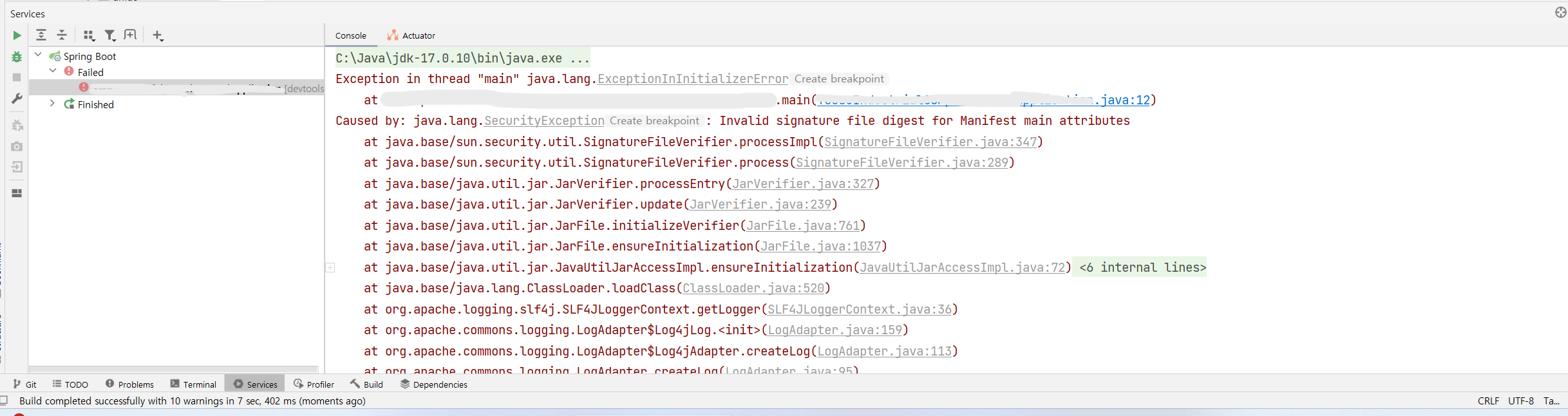 오늘은 사내 프레임워크 고도화를 하면서 마주친 invalid signature file digest for manifest main attributes 오류에 대해서 설명하고 해결 방법까지 기록해 보겠습니다!